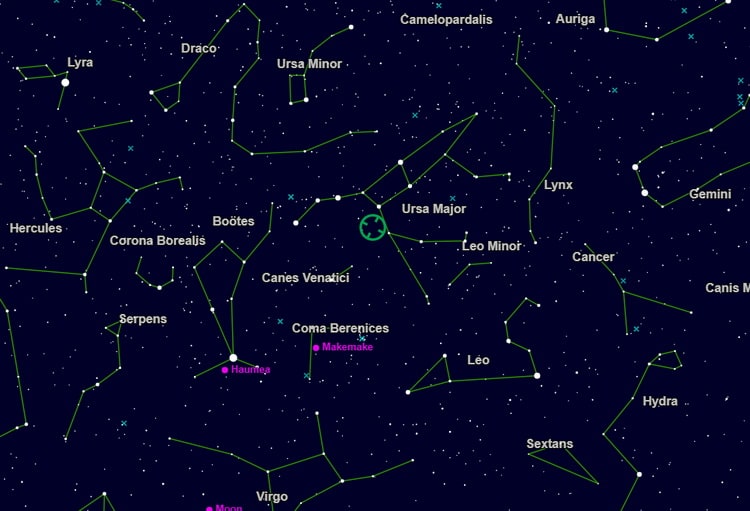 محل قرار گرفتن این کهکشان بر روی نقشه زیر مشخص شده است: