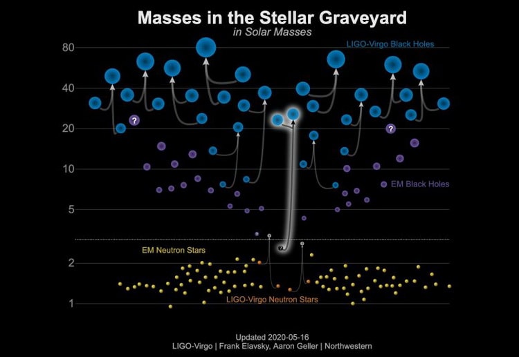 پروژه همکاری بین المللی «LIGO-Virgo» که مجموعه‌ای از آنتن‌ها در ایالات متحده و ایتالیا است، در تاریخ ۱۴ اوت ۲۰۱۹ امواج گرانشی عجیب و غریبی را شناسایی کرد. مطالعات حاکی از آن بود که یک شیء با جرم ۲.۶ برابر خورشید ۷۸۰ میلیون سال پیش توسط یک سیاه‌چاله قورت داده شده است. این عجیب بود، زیرا تعداد بسیار کمی از اشیاء با آن جرم می‌توانند وجود داشته باشند.