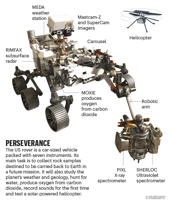 «استقامت» از هفت ابزار خود برای توصیف سطح شناسی دهانه «جزرو» و جستجوی نشانههایی از حیات باستانی در مریخ در شعاع ۴۵ کیلومتری سنگهای این دهانه میلیاردها سال پیش میزبان یک دریاچه و یک دلتای رودخانهای بوده است، استفاده خواهد کرد.