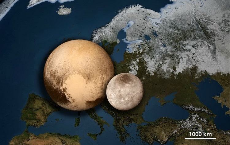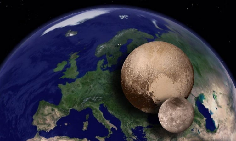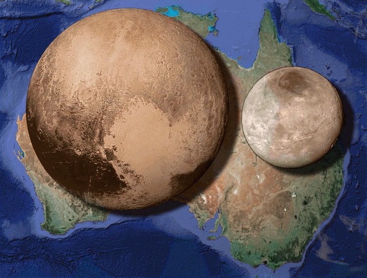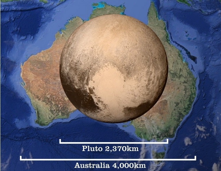 در سال ۲۰۱۵ مقایسه جالبی بین مساحت استرالیا و بزرگی پلوتو انجام گرفت. قطر پلوتو حدوداً ۲۳۷۰ کیلومتر در مقابل پهنای کشور استرالیا که حدود ۴۰۰۰ کیلومتر است! حتی ما میتوانیم شارون - قمر پلوتو – را هم روی استرالیا در کنار پلوتو قرار دهیم.