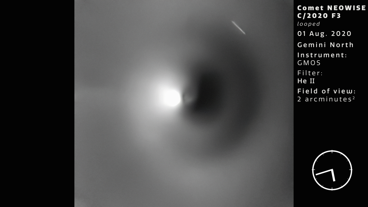 تصاویری که این تلسکوپ در اول اوت سال ۲۰۲۰ در دسترس آنها قرار داده یک جریان مارپیچ از گاز مولکولی را که چرخش هسته ستاره دنباله دار در آن نمایان است را نشان می‌دهد. مدت زمان تایم‌لپس این تصاویر که تنها چند ثانیه است، حدود یک پنجم از دوره چرخش تقریبا ۷.۵ ساعته دنباله دار را نشان می‌دهد. این مشاهدات، تحت یک برنامه تحقیقاتی برای کشف پویایی چرخشی این دنباله دار در طی چندین شب انجام گرفت.