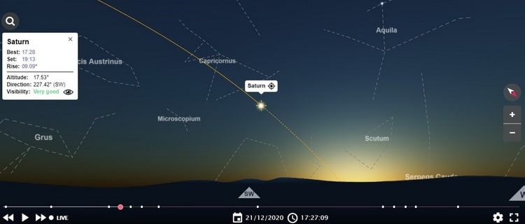 از سپتامبر ۲۰۲۰، سیاره مشتری در حال نزدیک شدن به زحل در آسمان سر شب است. هر جای کره زمین هم باشید، حتی در جاهایی که آلودگی نوری زیادی وجود دارد، باز هم میتوانید شاهد این رخداد کم نظیر و زیبا باشید. شما میتوانید این رخداد را پس از غروب خورشید به راحتی مشاهده کنید. اگر در نیمکره شمالی هستید، به سمت جنوب غربی نگاه کنید و اگر هم در نیمکره جنوبی ساکن هستید، نگاهتان را به سوی غرب متمرکز کنید.