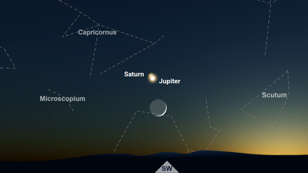 با شروع ماه نوامبر، مشتری و زحل در حدود ۵ درجه افتراق دارند. اگر بازویتان را به صورت مستقیم به سوی آسمان باز کنید، فاصله بین این دو سیاره، به اندازه عرض سه انگشت وسطتتان خواهد بود!