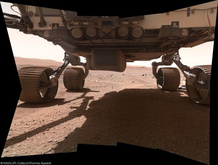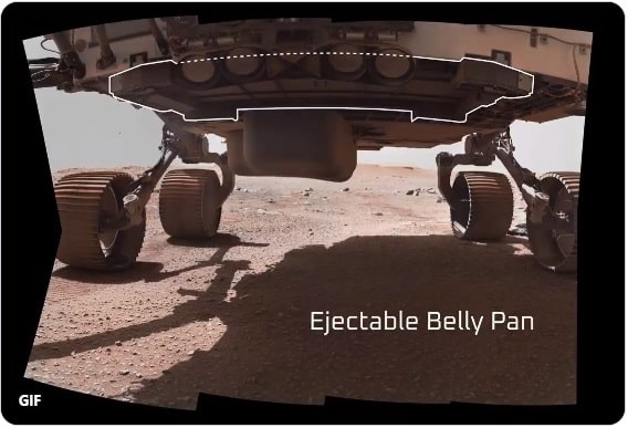 ناسا اخیرا در حساب کاربری مریخ نورد استقامت در توییتر تصویری منتشر کرد و در آن صفحه فلزی که قادر به پرتاب است (ejectable belly pan) و در بخش زیرین این مریخ نورد قرار دارد را نشان داد. این تصویر توسط بازوی رباتیک مریخ نورد استقامت ثبت شده است و در حال بررسی تمامی موارد قبل از خارج کردن صفحه فلزی مذکور است.
