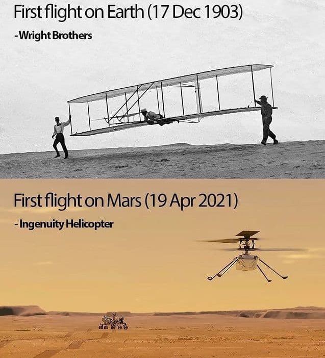 مقایسه اولین پرواز بشر بر روی کره زمین و روی مریخ
