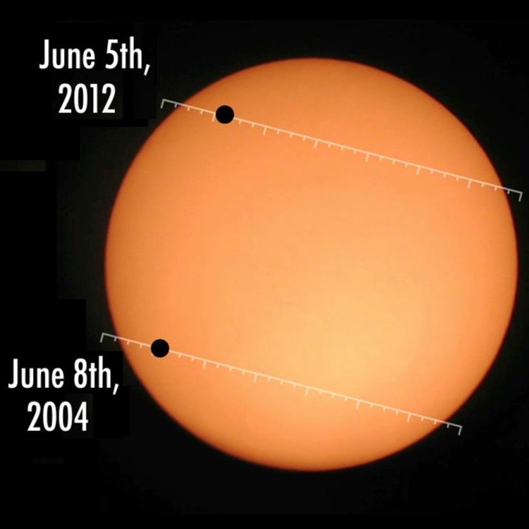 - گذرهای ونوس به صورت جفتهای زمانی ۸ ساله اتفاق میافتد. (۲۰۰۴ و ۲۰۱۲ | ۲۱۱۷ و ۲۱۲۵)