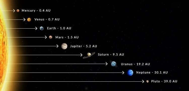 فاصله خورشید تا هر یک از سیارات منظومه شمسی بر حسب واحد نجومی چقدر است؟