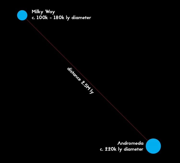 مقایسه بزرگی و فاصله بین آندرومدا و کهکشان راه شیری