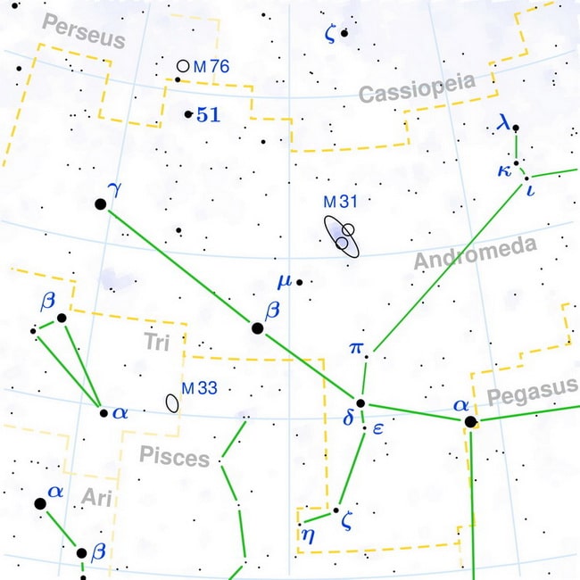 موقعیت کهکشان آندرومدا (M31) در صورت فلکی آندرومدا