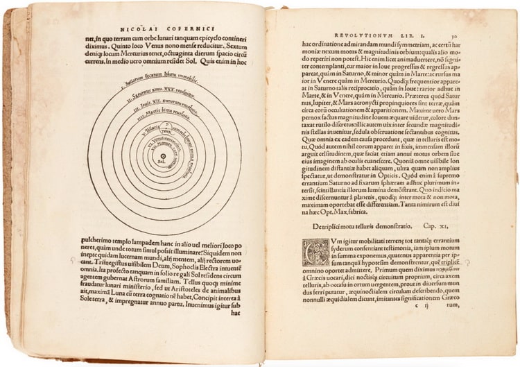 این کتاب که در سال ۱۵۴۳ منتشر شده بود، در روز ۲۵ مه ۲۰۲۱ به قیمت ۲۷۷ هزار و ۲۰۰ پوند به فروش رسید. کوپرنیک در این کتاب نظریه خورشید مرکزی خود که بیان میکند خورشید در مرکز منظومهی شمسی قرار دارد را توضیح میدهد، این نظریه رویداد بزرگی در تاریخ علم بود که باعث ایجاد انقلاب "کوپرنیک" و انقلابی علمی شد. با این حال بنیاد ملی علوم دریافته که تقریبا یک چهارم آمریکاییها هنوز باور دارند که خورشید به دور زمین میچرخد.