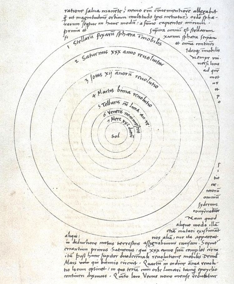 کوپرنیک ابتدا ایدههای خود در مورد نظریه خورشید مرکزی را به طور دستنویس نوشته بود. این نوشتهها در میان همکارانش دست به دست میشدند.
