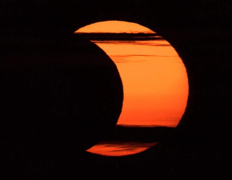 تصویر بالا  توسط بیل اینگالاس ثبت شده که خورشیدگرفتگی جزئی را هنگام طلوع خورشید نشان می‌دهد و ساختمان «کاخ کنگره آمریکا» (U.S. Capitol) نیز در آن دیده می‌شود.