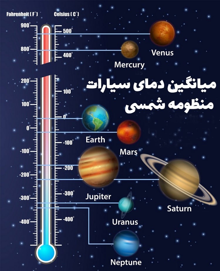 میانگین دمای سطح سیارههای منظومه شمسی را در اینجا ملاحظه میکنید: