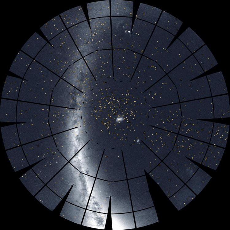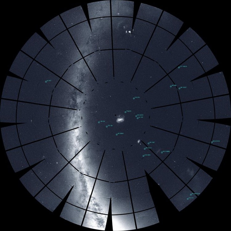 ترکیب ۱۳ تصویر گرفته شده از ماهواره تِس از آسمان نیمکره جنوبی
