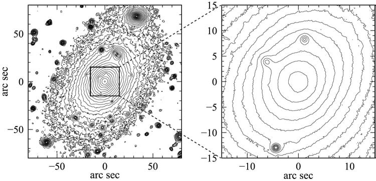 "ینس توماس" یکی از اخترشناسان این گروه می‌گوید: جدیدترین نسل شبیه سازی‌های رایانه‌ای از ادغام کهکشان‌ها، پیش بینی‌های ما را با خواص مشاهده شده به خوبی مطابقت داد. این شبیه سازی‌ها شامل تعامل بین ستاره‌ها و یک سیستم دوتایی از سیاه‌چاله است، اما ماده مهم این واکنش، دو کهکشان بیضوی است که هسته‌های تخلیه شده داشته باشند. این بدان معنی است که شکل نمایه نور و مسیر ستاره‌ها حاوی اطلاعات باستان شناسی ارزشمندی در مورد شرایط خاص شکل‌گیری هسته در این کهکشان و همچنین دیگر کهکشان‌های بسیار عظیم است.