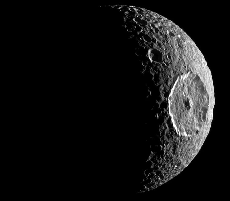 فضاپیمای کاسینی ناسا تصویری از قمر میماس که کوچکترین و درونیترین قمر اصلی سیاره زحل است، ثبت کرده که ناسا اخیرا آن را منتشر کرده است. سیاره زحل ۸۲ قمر دارد و هر یک از آنها اندازههای مختلفی دارند و حتی برخی از آنها از سیاره عطارد نیز بزرگتر هستند. ناسا اخیرا در حساب کاربری خود در توییتر تصویری از قمر میماس سیاره زحل که توسط فضاپیمای کاسینی ثبت شده را منتشر کرد.