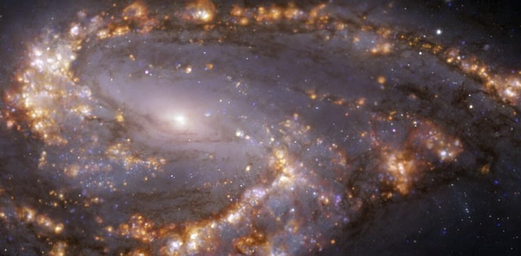 در تصویر جدیدی که توسط رصدخانه جنوب اروپا (ESO) منتشر شده است میتوان گازهای طلایی و بنفش کهکشان مسیه ۶۶ (Messier 66) را مشاهده کرد. ابزار کاوشگر طیف سنجی چند واحدی تلسکوپ بسیار بزرگ (MUSE) از طیفی از طول موجهای نور برای ایجاد تمایز بین عناصر شیمیایی در این کهکشان استفاده کرد. مشاهدات متعدد مجموعهای از گازهای اکسیژن، هیدروژن و گوگرد را نشان داد که توسط ستارههای جوان یونیزه شدهاند. این تصویر توسط رصدخانه جنوب اروپا در روز ۲ مه منتشر شده است.