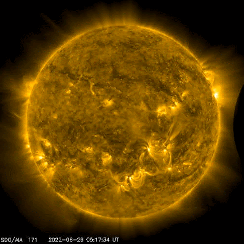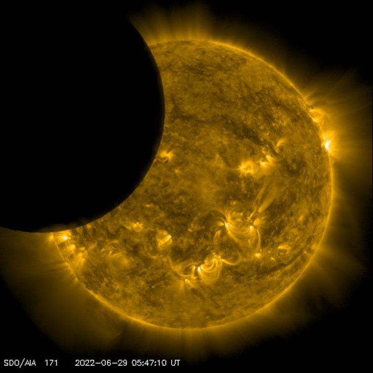 روز چهارشنبه ۲۹ ژوئن (۸تیر) یک تلسکوپ خورشیدی، تصویری از ماه هنگام عبور از مقابل خورشید در نمایی نزدیک ثبت کرد. رصدخانه پویاییشناسی خورشید ناسا (Solar Dynamics Observatory: SDO)، خورشیدگرفتگی را از نقطه دید منحصر به فرد خود در فضا یعنی تنها نقطهای که این ماه گرفتگی قابل رویت بود، ثبت کرد.