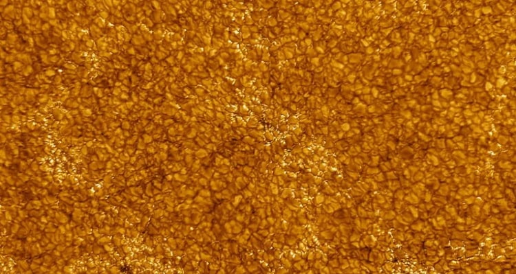 تصویر دوم نیز گرانولهای خورشیدی را نشان میدهد که حاصل جریانهای همرفتی پلاسما در ناحیه همرفتی خورشید، درست زیر فوتوسفر که پایینترین لایه جو خورشید است، هستند. هر گرانول در این تصویر حدود ۱۶۰۰ کیلومتر عرض دارد.