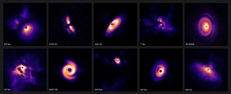 به نقل از اسپیس، در این عکسها، منظومههای سیارهای در حال ظهور بیشتر شبیه به کهکشانهای مینیاتوری به نظر میرسند. شکلهای موجود در این عکسها، بازوهای مارپیچی را با وضوح مشخص نشان میدهند که از گرد و غبار متراکم ناشی میشوند. برخی دیگر، ابرهای درخشان را نشان می دهند.