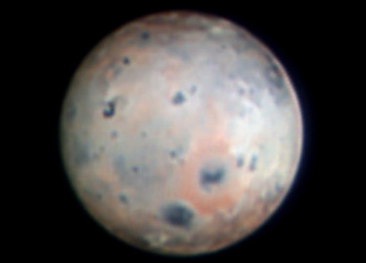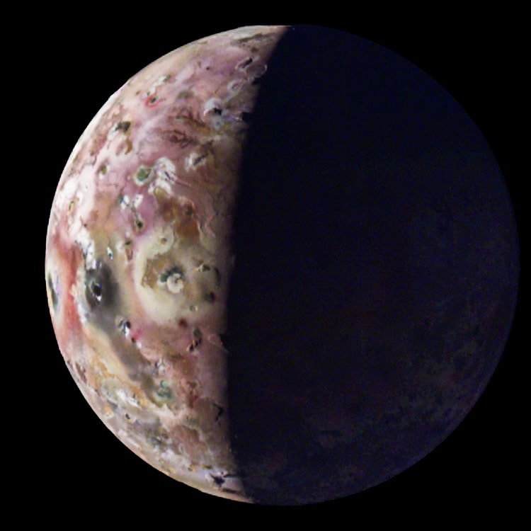 عکس جدید آیو در واقع آن قدر پیچیده است که دانشمندان میتوانند ذخایر گدازه پرتابشده از دو آتشفشان فعال را در جنوب استوای قمر تشخیص دهند. عکس تلسکوپ بزرگ دوچشمی از آیو که در اوایل ژانویه گرفته شده، حلقهای از گوگرد را به رنگ قرمز تیره در اطراف آتشفشان «پله» (Pele) نشان میدهد. پله یک آتشفشان برجسته است که معمولا ستونهایی از گدازه را تا ارتفاع ۳۰۰ کیلومتری بالای سطح آیو پرتاب میکند. به نظر میرسد که این حلقه تا حدی توسط زبالههای سفید پنهان شده است. این زبالههای سفید نشاندهنده دیاکسید گوگرد منجمد هستند که از یک آتشفشان همسایه به نام «پیلان پاترا» (Pillan Patera) پرتاب میشوند. تا آوریل، حلقه قرمز پله یک بار دیگر در عکسهای ثبتشده با فضاپیمای «جونو»(Juno) ناسا ظاهر شد که طی نزدیکترین پرواز آن از کنار آیو در دو دهه اخیر گرفته شدند. در این عکسها، حلقه تقریبا کامل دیده میشود و مواد جدیدی را نشان میدهد که از آتشفشان فعال فوران کردهاند.