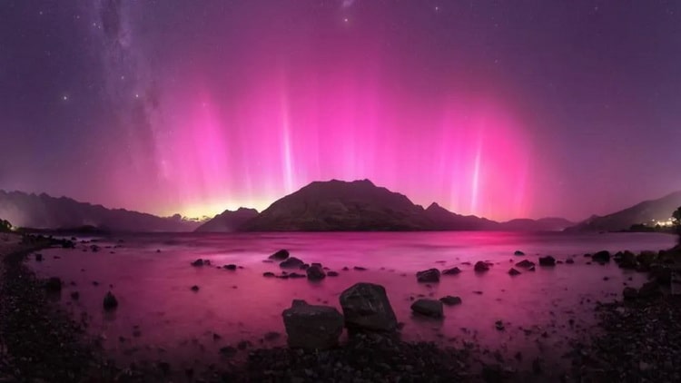 شفق قطبی استرالیا بر فراز کوئینزتاون نیوزلند دیده می شود