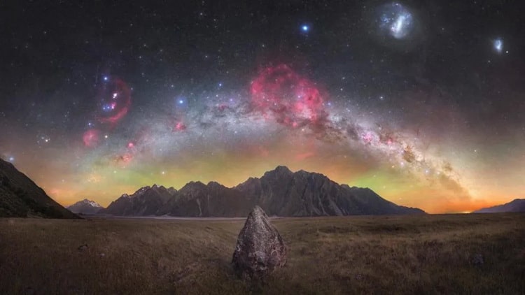 لارین رائه (Larryn Rae) با ثبت تصویری از شفق قطبی بر فراز کوئینستون نیوزلندبرنده شد. این تصویر یک پانورامای متشکل از ۱۹ تصویر است که پرتوهای صورتی تابش خورشیدی را که آسمان را در فوریه ۲۰۲۳ روشن کرده بود.