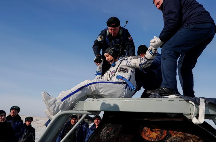 سه تن از فضانوردان ایستگاه فضایی بینالمللی، لحظاتی پیش با موفقیت به روی زمین فرود آمدند. به گزارش اسپیس، سه تن از فضانوردان ماموریت «اکسپدیشن ۶۱» (Expedition 61) توانستند با استفاده از چتر نجات فضاپیمای «سایوز» (Soyuz MS-13) در قزاقستان فرود آیند. «کریستینا کک» (Christina Koch) از ناسا، «لوکا پارمیتانو» (Luca Parmitano) از آژانس فضایی اروپا و «الکساندر اسکوورتسوف» (Alexander Skvortsov) از آژانس فضایی روسیه ساعت ۲۱:۱۹ دیشب، ایستگاه فضایی بینالمللی را به مقصد زمین ترک کردند و در نهایت توانستند در ساعت ۱۲:۴۲ هفدهم بهمنماه، روی زمین فرود آیند. قرار است ناسا از تجریبات "کریستینا کک" استفاده کند زیرا وی با سپری کردن ۳۲۸ روز در فضا، رکورد حضور یک فضانورد زن در فضا (با یک پرواز) را شکست. وی طی حضور موثر خود در فضا چند پیادهروی فضایی انجام داد و برای اولین بار در تاریخ به همراه دوست و همکار خود «جسیکا میر» (Jessica Meir) اولین پیادهروی فضایی کاملا زنانه را با موفقیت به سرانجام رساند. گفتنی است، ناسا فرود این فضانوردان را به صورت زنده پوشش داد.