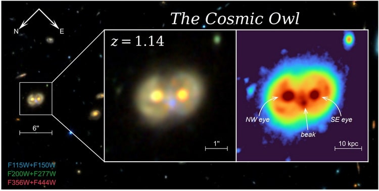 «لی» میگوید: این جغد فقط از نظر بصری خیرهکننده نیست، بلکه یک آزمایشگاه طبیعی است، زیرا به ما اجازه میدهد تا چندین فرآیند حیاتی تکامل کهکشان را که همزمان در یک سامانه اتفاق میافتد، مشاهده کنیم.