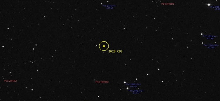 ناسا اخیرا اعلام کرده است سیارکی به نام «2020 CD3» را در ۱۵ فوریه شناسایی کرده که به مدت سه سال است به دور زمین میچرخد و میتوان آن را ماه کوچک جدید زمین دانست. اخترشناسان با کمک "نقشهبردار آسمانی کاتالینا" (Catalina Sky Survey) سیارکی را در آسمان ردیابی کردند و دریافتند حدود سه سال است که این سیارک در حال چرخش به دور زمین است. این سیارک که در ۱۵ فوریه دیده شد، اکنون به عنوان یک "ماه کوچک" (mini-moon) شناخته میشود. بنابر گفته اخترشناسان سیارک مذکور به اندازه یک ماشین لباسشویی بوده است. قطر این سیارک ۶ تا ۱۲ فوت (۲ تا ۴ متر) است و درخشندگی سیارکهای نوع C را داشته است. جرم این سیارک چیزی در حدود ۴۹۰۰ کیلوگرم میباشد. علاوه بر نکات مذکور سیارک مذکور غنی از کربن است. این یک خبر شگفتانگیز خواهد بود؛ چراکه تاکنون بیش از یک میلیون سیارک شناخته شده وجود دارد، اما این دومین سیارکی است که به دور زمین میچرخد. اگرچه بیش از یک میلیون سیارک شناختهشده در منظومه شمسی وجود دارند، این دومین مورد است که در حال چرخش به دور زمین مشاهده شده است. در سال ۲۰۰۶ پژوهشگران دانشگاه آریزونا با استفاده از نقشهبرداری آسمانی کاتالینا (Catalina Sky Survey) موفق به شناسایی یک سیارک که به اندازه یک خودرو بود، شدند و نام آن را" ۲۰۰۶ RH۱۲۰ " نهادند. سیارک " ۲۰۰۶ RH۱۲۰ " کمتر از یک سال پس از کشف نیز به دور زمین میچرخید؛ اما سپس مکان چرخش آن تغییر کرد و شروع به چرخش به دور خورشید کرد. سیارک " ۲۰۰۶ RH۱۲۰ " اولین سیارک شناسایی شده بود که به دور زمین میچرخید. تکمیلی: برای دیدن مداری که این ماه کوچک حرکت میکند، بر روی این لینک کلیک کنید (توضیح: حجم تصویر متحرک مربوطه، حدود ۱۴M میباشد.)