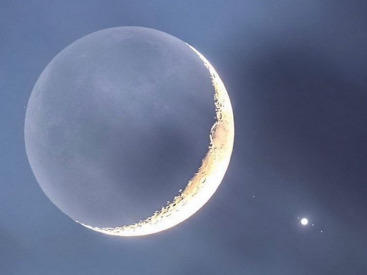 عکسی که میبینید، تصویری است از ماه 4.5 میلیار ساله ما با مشتری و قمرهای گالیلهای (Galilean moons) همانطور که در سمت راست تصویر میبینید، غول بزرگ منظومه شمسی با 4 تا از اقمارش (قمرهای گالیلهای) مشاهده میشوند. این قمرها از چپ به راست عبارتند از: کالیستو (Callisto)، اروپا (Europa) ، آیو (Io) و گانیمد (Ganymede) عکاس: Rami Ammoun تاریخ عکاسی: August 2, 2019