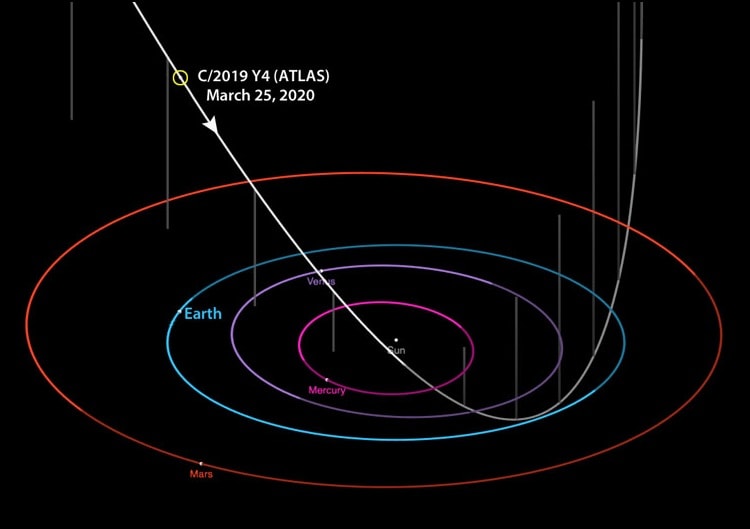 مسیر عبور ستاره دنبالهدار atlas در منظومه شمسی