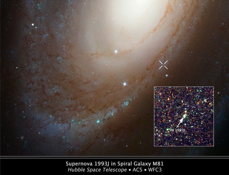 در تصویر زیر عکسی که توسط هابل از این ابرنواختر ثبت شده است را میبینید، همچنین جایگاه و موقعیت آن را در کهکشان M81 مشاهده میکنید. همچنین سناریوی احتمالی شکلگیری این ابرنواختر را نیز میتوانید ببینید: